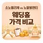 여러 웨딩홀을 비교해야 합리적인 가격을 찾을 수 있습니다. 같은 조건이라도 가격 차이가 큽니다.
